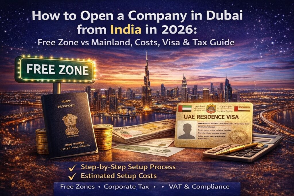 How to Open a Company in Dubai from India in 2026: Free Zone vs Mainland, Costs, Visa & Tax Guide